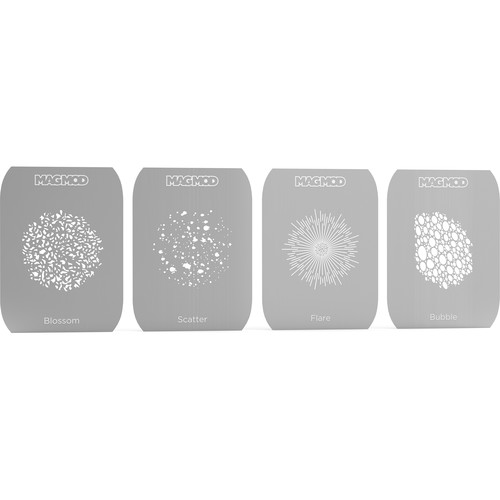 Σετ 4 patterns από ανοξείδωτο ατσάλι ειδικά σχεδιασμένων για χρήση με το MagBeam Modifier. Περιλαμβάνει τα Patterns blossom, scatter, flare και bubble.