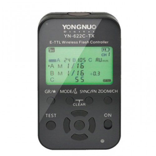 Ασύρματος E-TTL πομπός που μπορεί να ελέγξει 3 groups από YN-622C E-TTL πομποδέκτες με ανάμεικτο τρόπο λειτουργίας i-TTL, Manual ή HSS. Διαθέτει LCD οθόνη και εύχρηστο μενού.