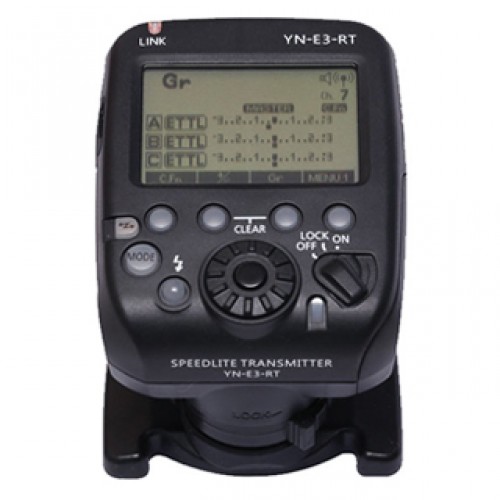 Ασύρματος E-TTL πομπός, συμβατός με το σύστημα ραδιοσυχνότητας RT της Canon. Mπορεί να ελέγξει 5 groups (15 units) δεκτών Yongnuo YN-E3-RΧ ή συμβατών speedlites Yongnuo YN600EX-RT και Canon 600EX-RT.