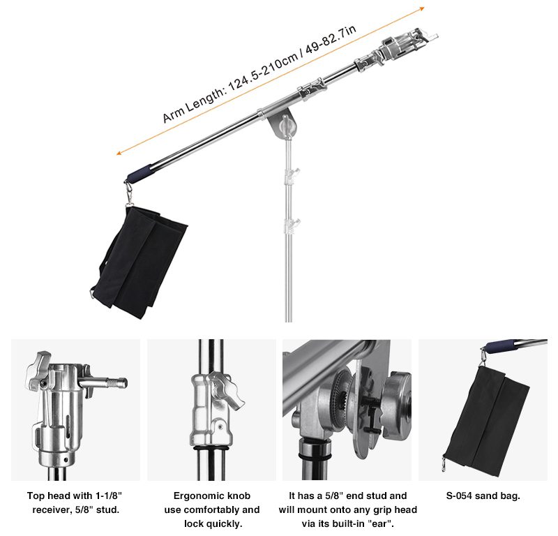 Υψηλής αντοχής boom arm κατασκευασμένος από ατσάλι. Στο άκρο του διαθέτει διπλό universal τελείωμα με 1-1/8’’ – 28mm junior receiver & 5/8’’ – 16mm baby receiver για μέγιστη ευελιξία επιλογών mounting. Συνοδεύεται με sandbag.