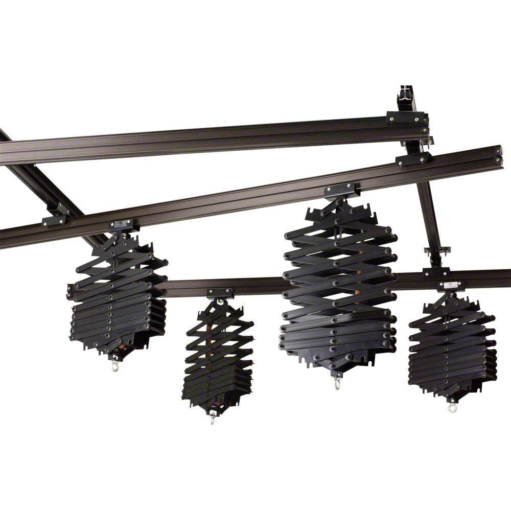Σύστημα οροφής με 4 παντογράφους. Περιλαμβάνει 5 ράγες των 3 μέτρων. Ο κάθε παντογράφος έχει μέγιστο όριο φόρτωσης τα 15kgs. Το σύστημα διαθέτει ειδικό σχεδιασμό ώστε να μπορείτε να τοποθετείται τα φωτιστικά σας με ευκολία και ασφάλεια στο χώρο του studio σας, πετυχαίνοντας το επιθυμητό αποτέλεσμα φωτισμού ενώ ταυτόχρονα εξοικονομείτε χώρο