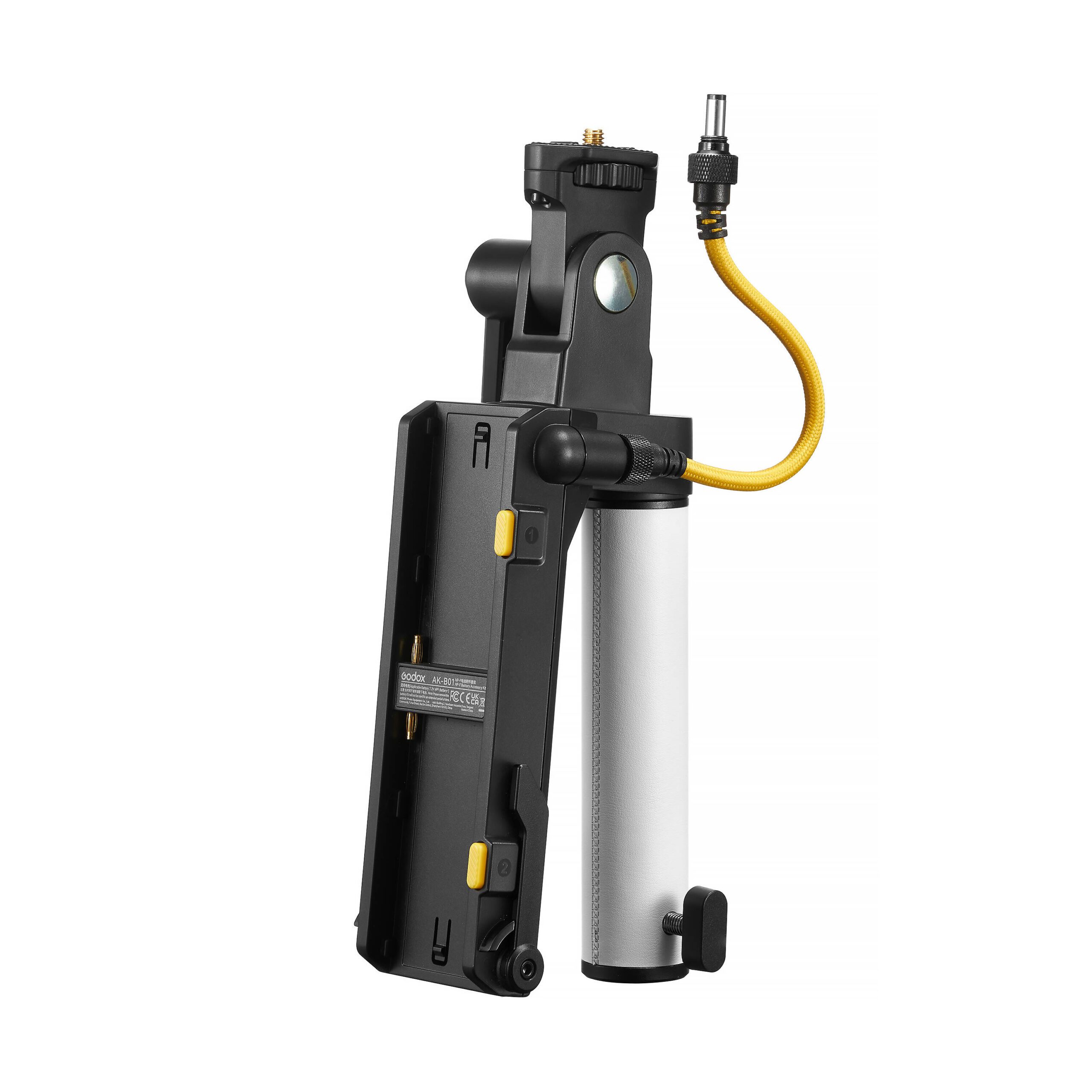 Ειδική χειρολαβή για το φωτιστικό LED ML60iiBi της Godox. Επιτρέπει την τροφοδοσία του LED από 2x μπαταρίες τύπου Sony L (NP-F). Επιπλέον βοηθά στην στήριξη του LED σε light stands