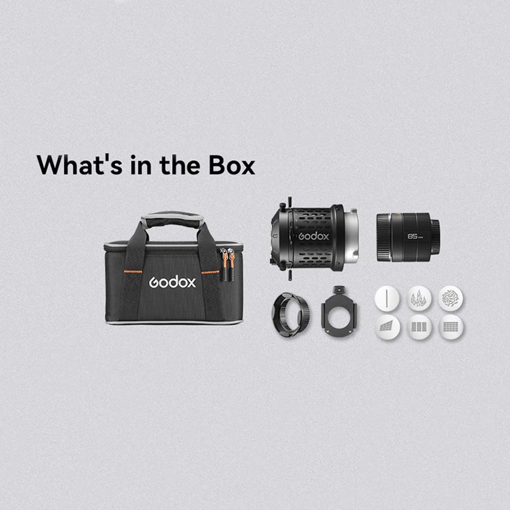 Προβολικό σύστημα για LED με μοντούρα Bowens με φακό 85mm, που εξασφαλίζει ελάχιστες χρωματικές αποκλίσεις χρωματικές αποκλίσεις και ομοιόμορφη ένταση σε όλη την επιφάνεια προβολής. Το σύστημα μπορεί να λειτουργήσει με φακούς της Godox (διαθέσιμοι σε 48 / 65 / 85 / 150mm) ή με φακούς Canon EF.