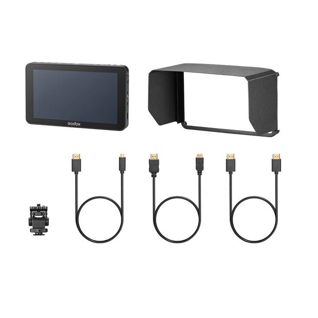 Η συσκευασία περιλαμβάνει: οθόνη, σκίαστρο, cold shoe mount, καλώδιο HDMI Full-to-Full, καλώδιο HDMI Full-to-Mini, καλώδιο HDMI Full-to-Micro.