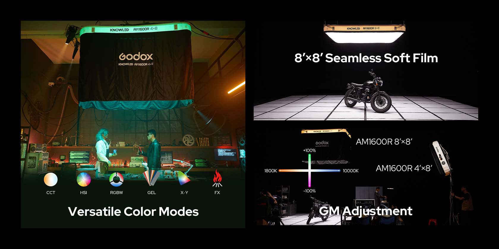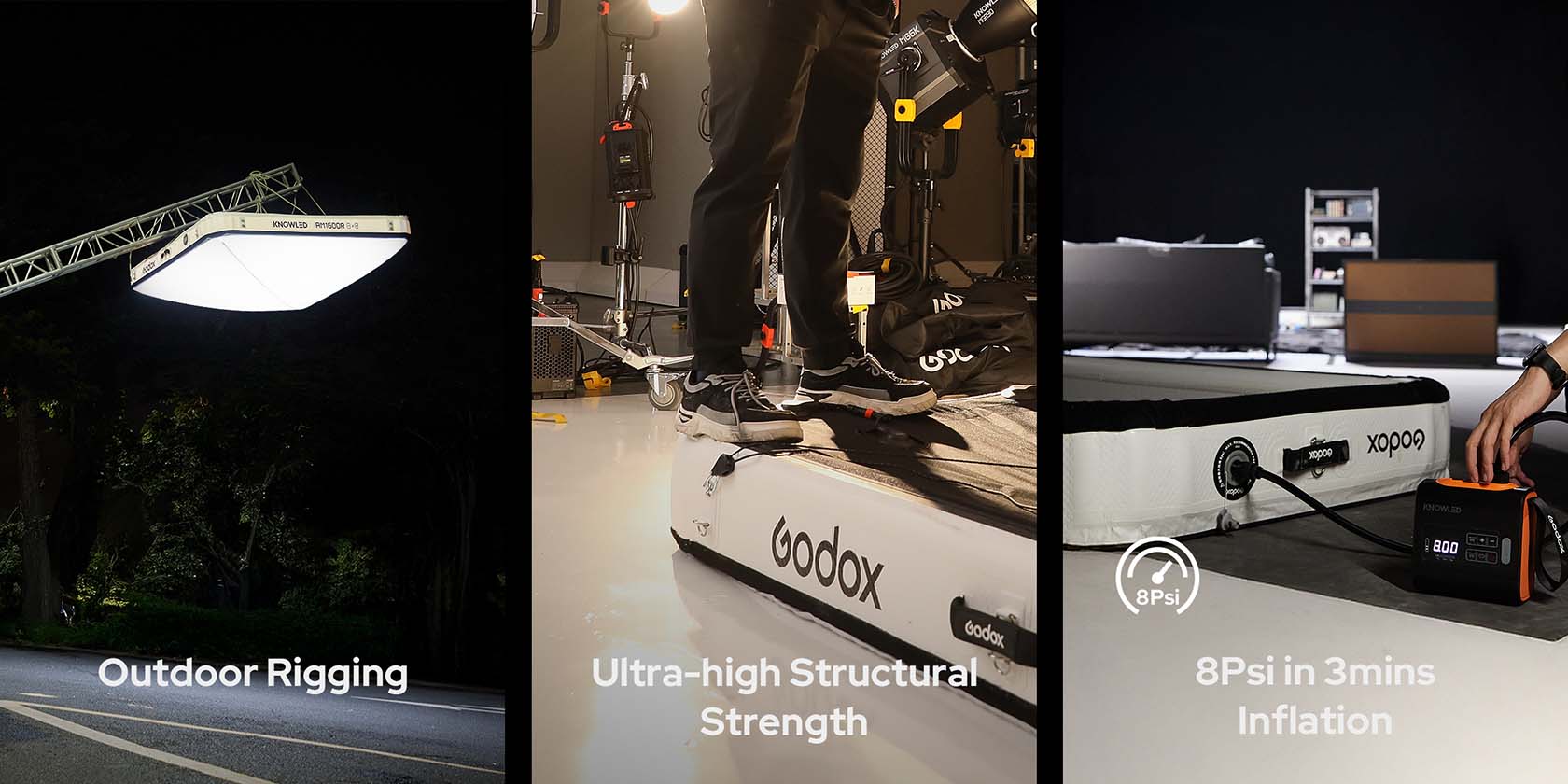 Το Godox KNOWLED AM1600R 48K είναι ένα επαγγελματικό φωτιστικό RGB LED 1600W με φουσκωτή κατασκευή, σχεδιασμένο για κινηματογραφικές και τηλεοπτικές παραγωγές.