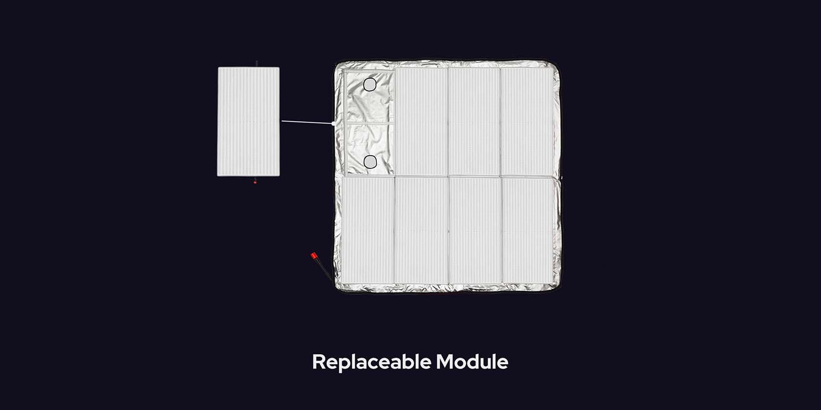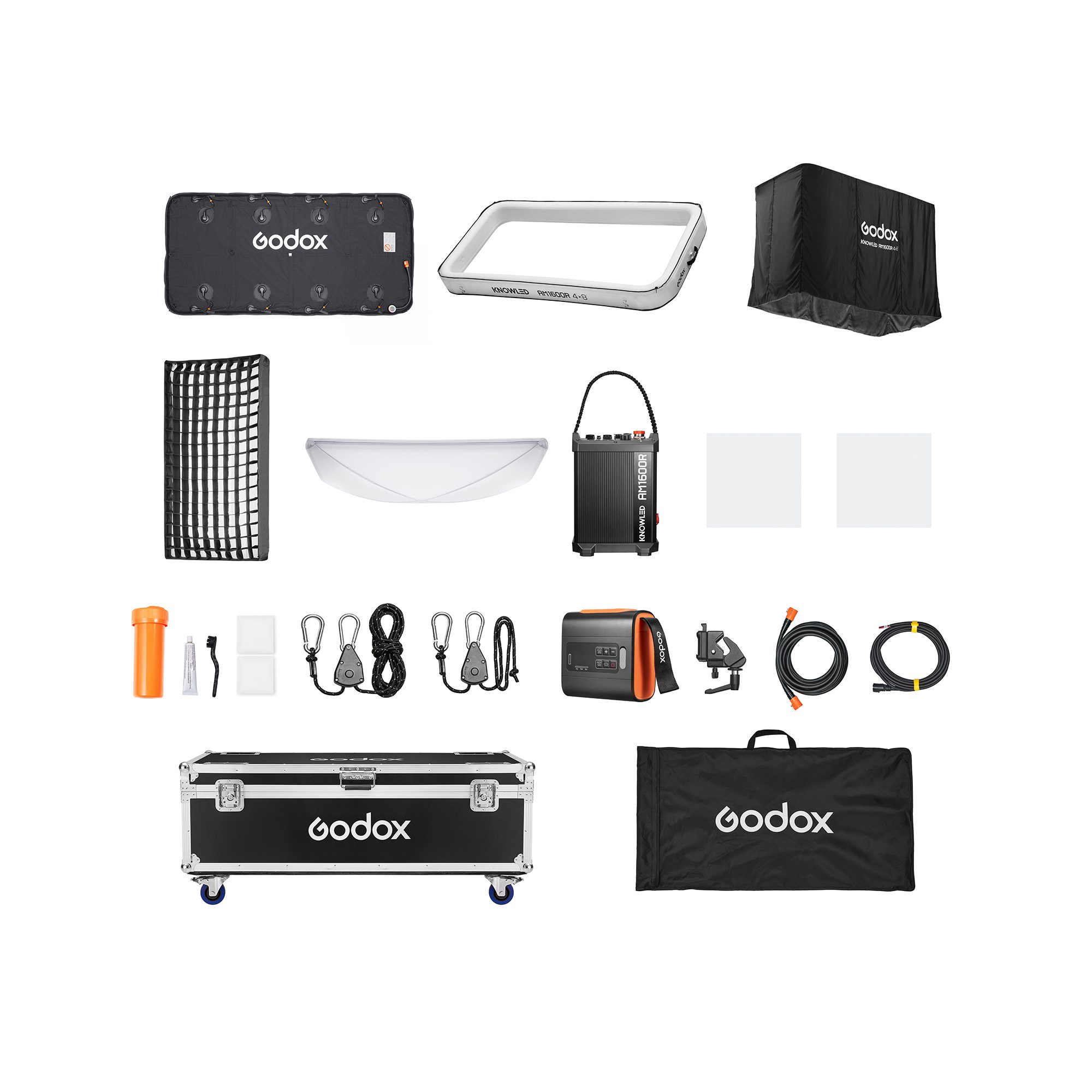 Η συσκευασία περιλαμβάνει: 1x φωτιστικό σώμα (4×8’), 1x φουσκωτό σκελετό τύπου Butterfly, 1x χειριστήριο (controller), 1x βάση στήριξης χειριστηρίου, 1x αντλία αέρα, 2x υφάσματα διάχυσης, 1x φανάρι τύπου Pancake, 1x grid, 1x περίβλημα (skirt), 1x σετ επισκευής, 1x σετ οπτικών εξαρτημάτων, 1x καλώδιο ρεύματος AC, 1x καλώδιο ρεύματος DC και 1x βαλίτσα μεταφοράς.
