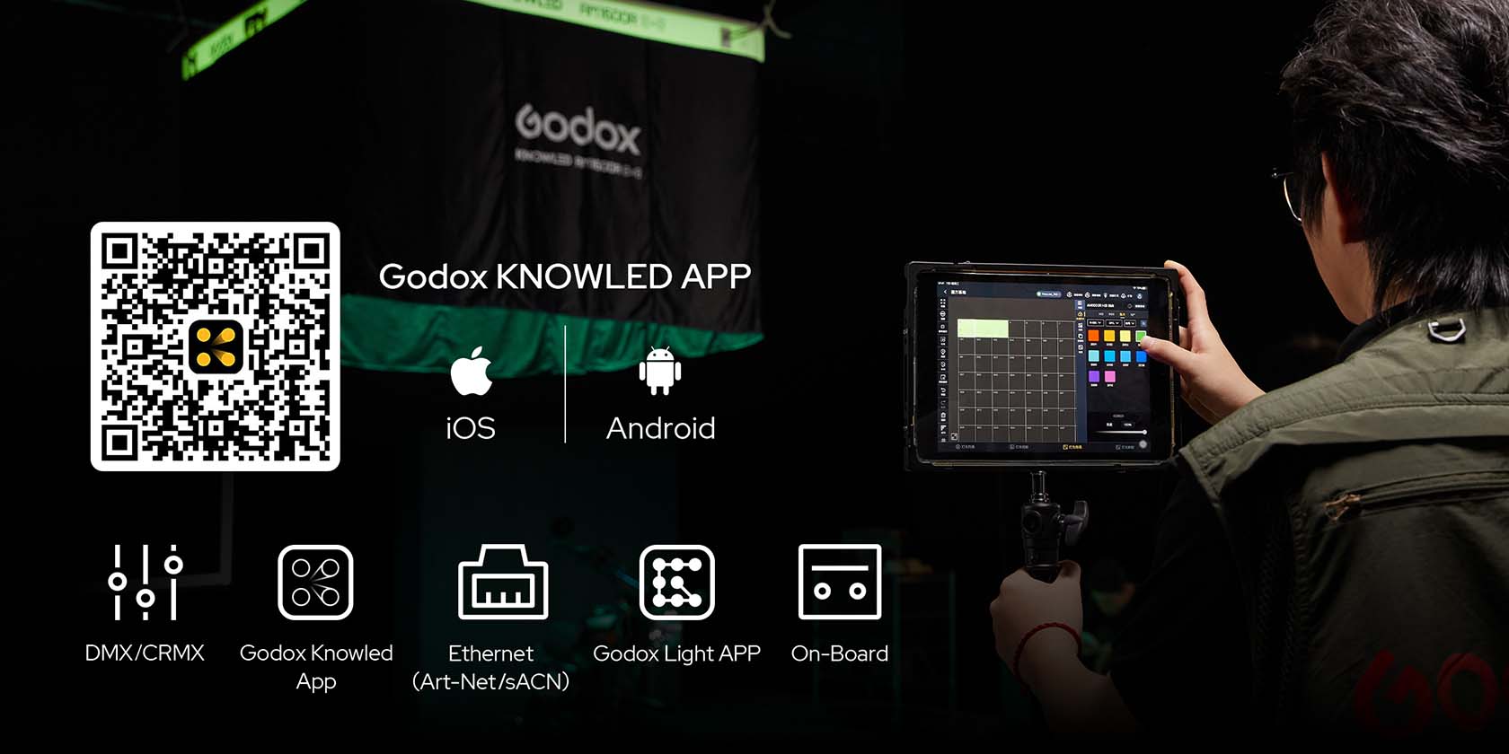 Υποστηρίζει DMX512, CRMX, καθώς και ασύρματο έλεγχο μέσω Bluetooth από την εφαρμογή Godox Light App, παρέχοντας ευελιξία και ακρίβεια στον χειρισμό.