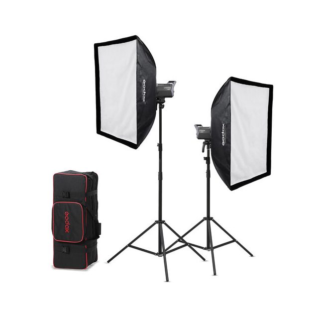 Το Διπλό κιτ περιλαμβάνει: 2x Φωτιστικά LA200Bi, 2x Προστατευτικά λάμπας, 2x Ανακλαστήρες, 2x Καλώδια ρεύματος, Εγχειρίδιο χρήσης, 2x Godox 304 Light Stand, 2x Softbox 6090, Τσάντα μεταφοράς.