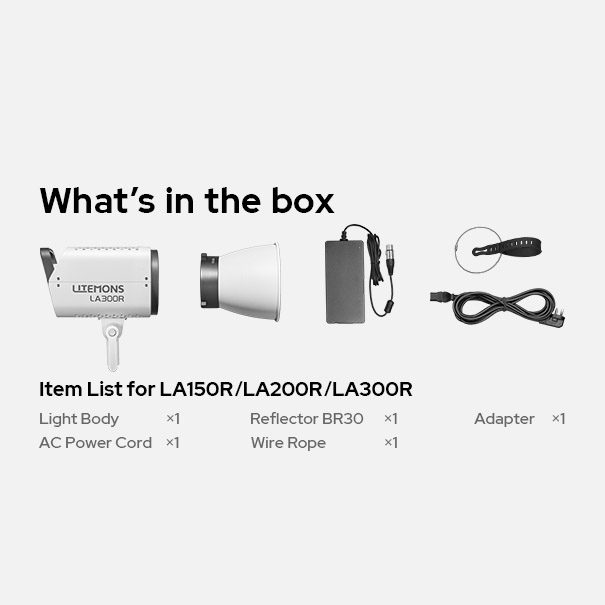 Το Godox Litemons LA200R είναι ένα COB LED φωτιστικό ισχύος 330W και φωτεινότητας 64.000 lux στο 1μ στα 5600Κ με χρήση του παρεχόμενου ανακλαστήρα. Παρέχει φωτισμό σε θερμοκρασίες 2500K-10000K (CCT) αλλά και σε πλήρες χρωματικό φάσμα HSI RGBWW.