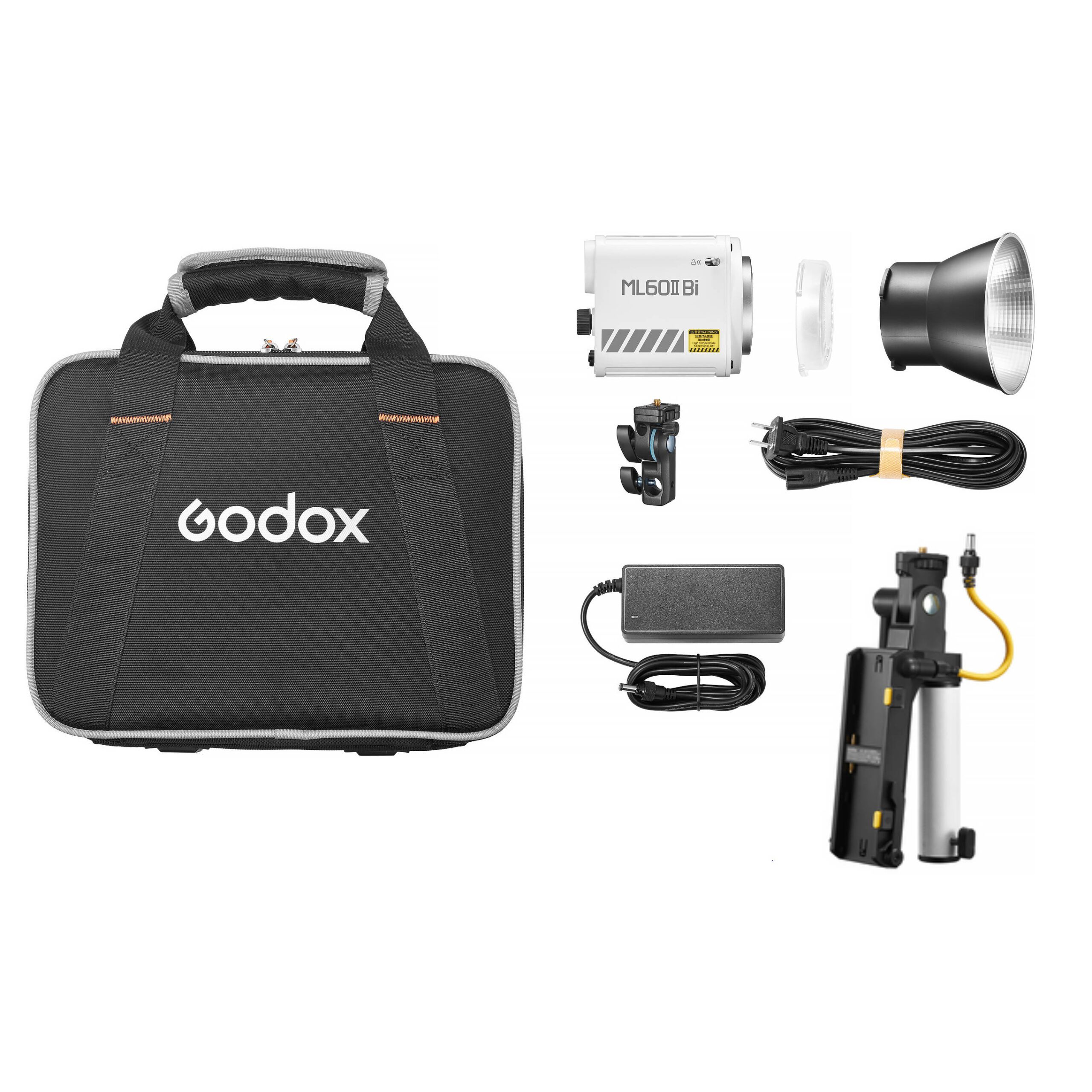 Η συσκευασία περιλαμβάνει: Φωτιστικό, ανακλαστήρα, κάλυμμα λάμπας, AD-E2 holder, καλώδιο ρεύματος, ac adapter, τσάντα μεταφοράς, εγχειρίδιο χρήσης.