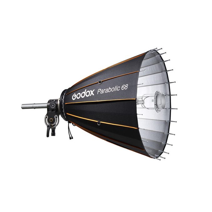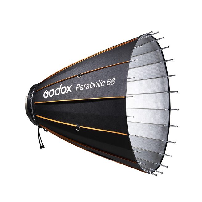 Το Godox Parabolic68 παραβολικό σύστημα εστίασης και ελέγχου φωτισμού είναι ειδικά σχεδιασμένο και κατασκευασμένο για τις ανάγκες ενός επαγγελματικού studio φωτογραφίας. Διαθέτει σχεδιασμό και κατασκευή μέγιστης ακρίβειας. Τα βασικά του στοιχεία είναι το αληθινά παραβολικό σχήμα, οι 24 μπαλένες υψηλής αντοχής και η ισχυρή δοκός εστίασης που επιτρέπει την τοποθέτηση του flash σας σε διάφορες θέσεις εντός του παραβολικού box.