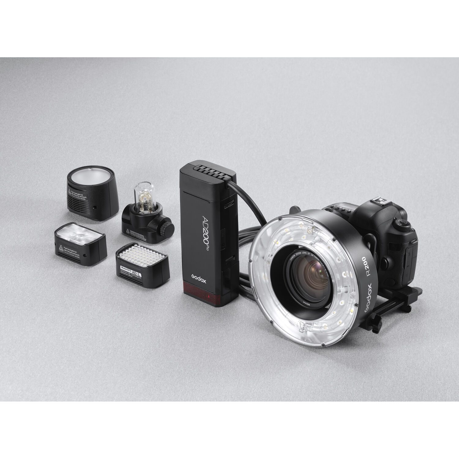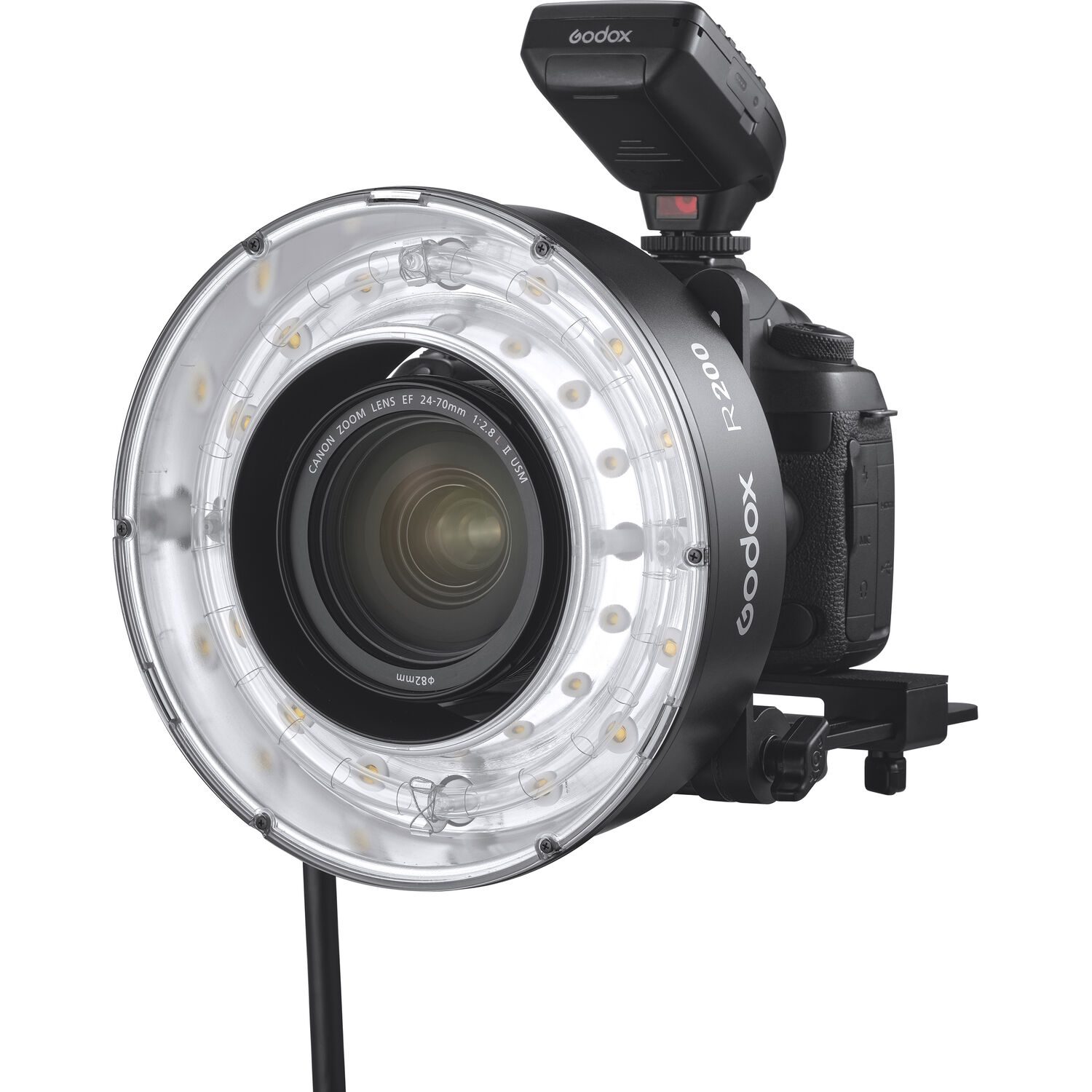 Το Godox R200 είναι μια κεφαλή Ring Flash έντασης 200Ws συμβατή με τα δημοφιλή Godox AD200 / AD200Pro φορητά studio flash. Είναι μια εξαιρετικά χρήσιμη προσθήκη στο σύστημα του AD200, ιδανική για φωτογράφιση πορτραίτου, μόδας, hair styling, tattoo, macro.