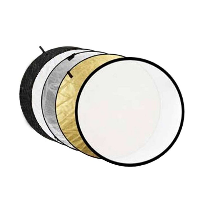 Ποιοτικό σετ ανακλαστήρων διαμέτρου 80cm με εύκαμπτο μεταλλικό πλαίσιο ώστε να αναδιπλώνεται στα 30cm και να μεταφέρεται εύκολα (παρέχεται ειδική τσάντα). Σας δίνει πλήρεις δυνατότητες ανάκλασης με τη Λευκή, Μαύρη, Ασημένια και Χρυσή επιφάνεια ανάκλασης όπως επίσης και δυνατότητα diffusion.