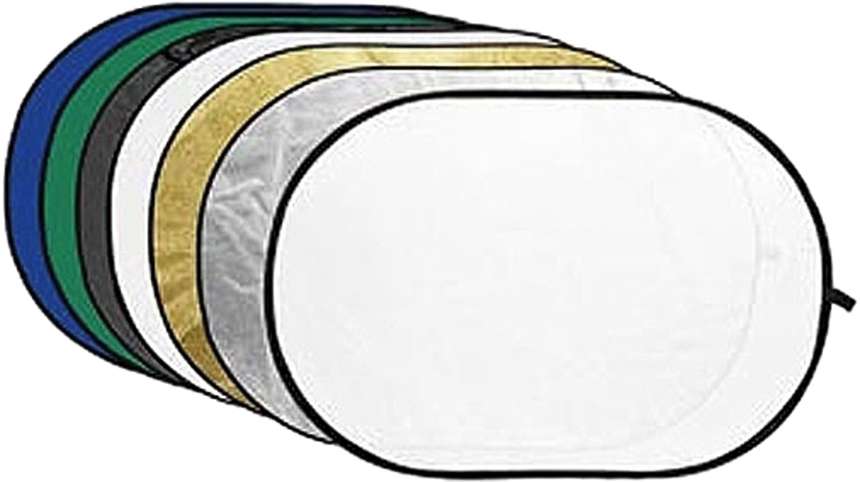 Ποιοτικό σετ ανακλαστήρων διαμέτρου διάστασηας 120x180cm με εύκαμπτο μεταλλικό πλαίσιο ώστε να αναδιπλώνεται στο 1/3 του αρχικού μεγέθους και να μεταφέρεται εύκολα (παρέχεται ειδική τσάντα). Σας δίνει πλήρεις δυνατότητες ανάκλασης/διάχυσης με Λευκή, Μαύρη, Ασημένια, Χρυσή, Διάχυση, Πράσινη, Μπλε.