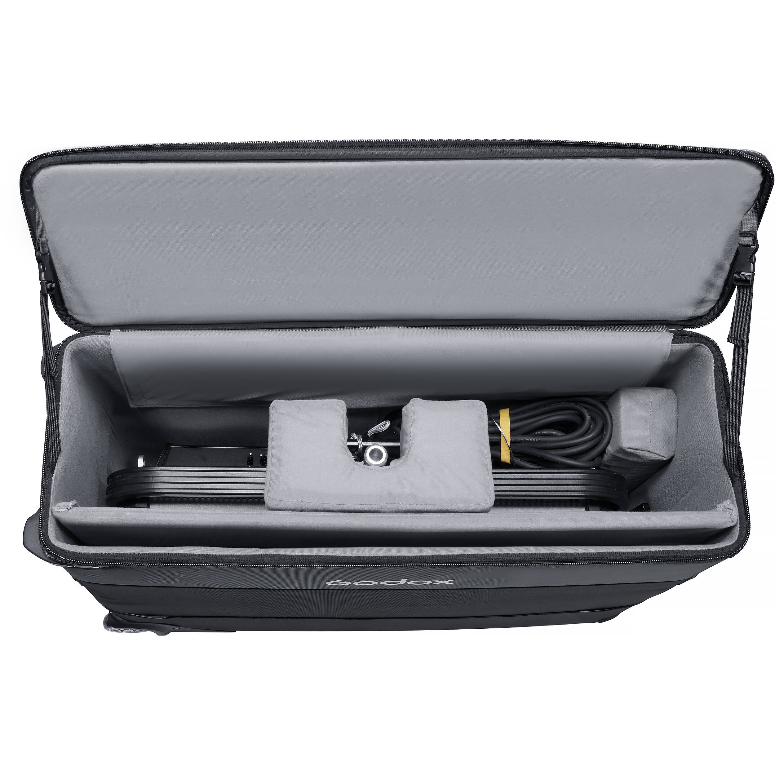 Η Godox SC04 είναι μία μαλακή, επενδυμένη τσάντα με ροδάκια, σχεδιασμένη για την προστασία και τη μεταφορά των φωτιστικών πάνελ Godox KNOWLED P600R και P1200R, μαζί με τα αξεσουάρ τους. Αυτή η ανθεκτική τσάντα με δομή και εσωτερική επένδυση εξασφαλίζει ότι τα φώτα είναι ασφαλή από τυχόν ζημιές κατά τη μεταφορά, κάτι που την καθιστά ιδανική για επαγγελματικές φωτογραφήσεις ή γυρίσματα σε εξωτερικούς χώρους ή στο στούντιο. Διαθέτει επίσης ροδάκια για εύκολη μετακίνηση και μαλακές λαβές για ευκολότερη μεταφορά​