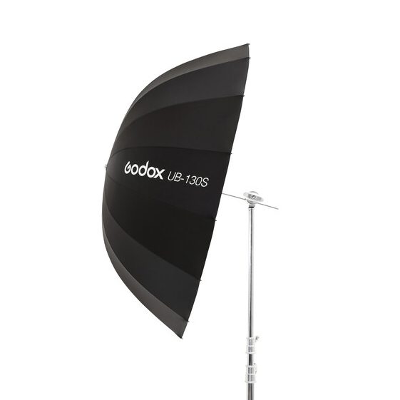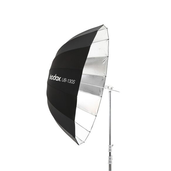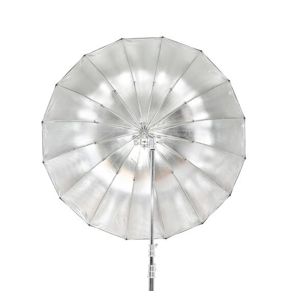 Παραβολική ομπρέλα ανάκλασης διαμέτρου 130 cm. Εσωτερική επιφάνεια ασημένια, εξωτερική μαύρη.