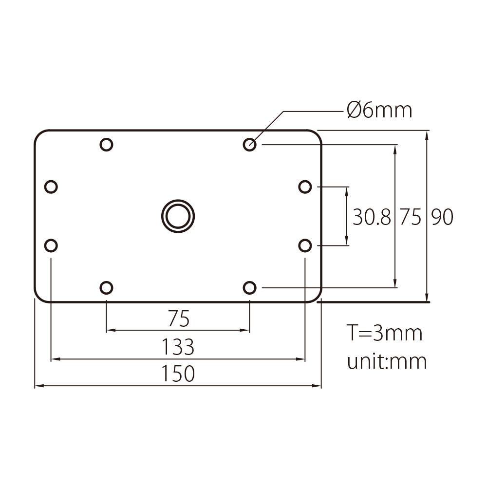 Wall plate με Baby pin 5/8″ μήκους 15cm. Διαθέτει οκτώ σημεία για ασφαλή τοποθέτηση σε τοίχους, οροφές ή δάπεδα. Βάρος 720g, διάσταση πλάτης 9x15cm.