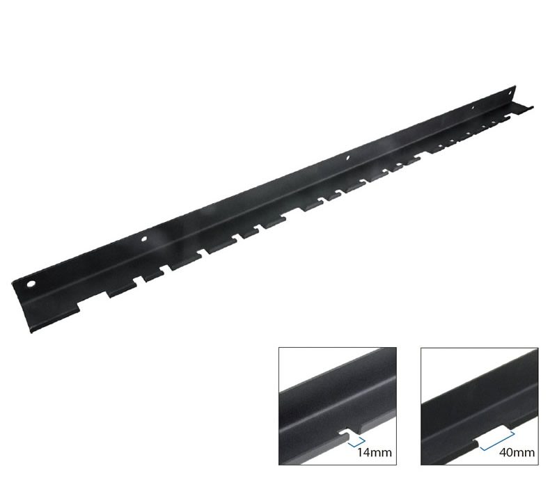 Ράγα τοίχου για στήριξη και παρουσίαση stand. Κατασκευασμένη από ανοξείδωτο ατσάλι με μαύρη ματ επίστρωση. Διαθέτει 15 υποδοχές των 14mm, ιδανικές για στήριξη σταντ με baby pin και 4 υποδοχές των 40mm για μεγαλύτερα stand ή ειδικού αντάπτορες (KUPO KCP-950 / KCP-930).
