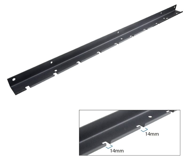 Ράγα τοίχου για στήριξη και παρουσίαση stand. Κατασκευασμένη από ανοξείδωτο ατσάλι με μαύρη ματ επίστρωση. Διαθέτει 10 υποδοχές των 14mm, ιδανικές για στήριξη σταντ με baby pin.