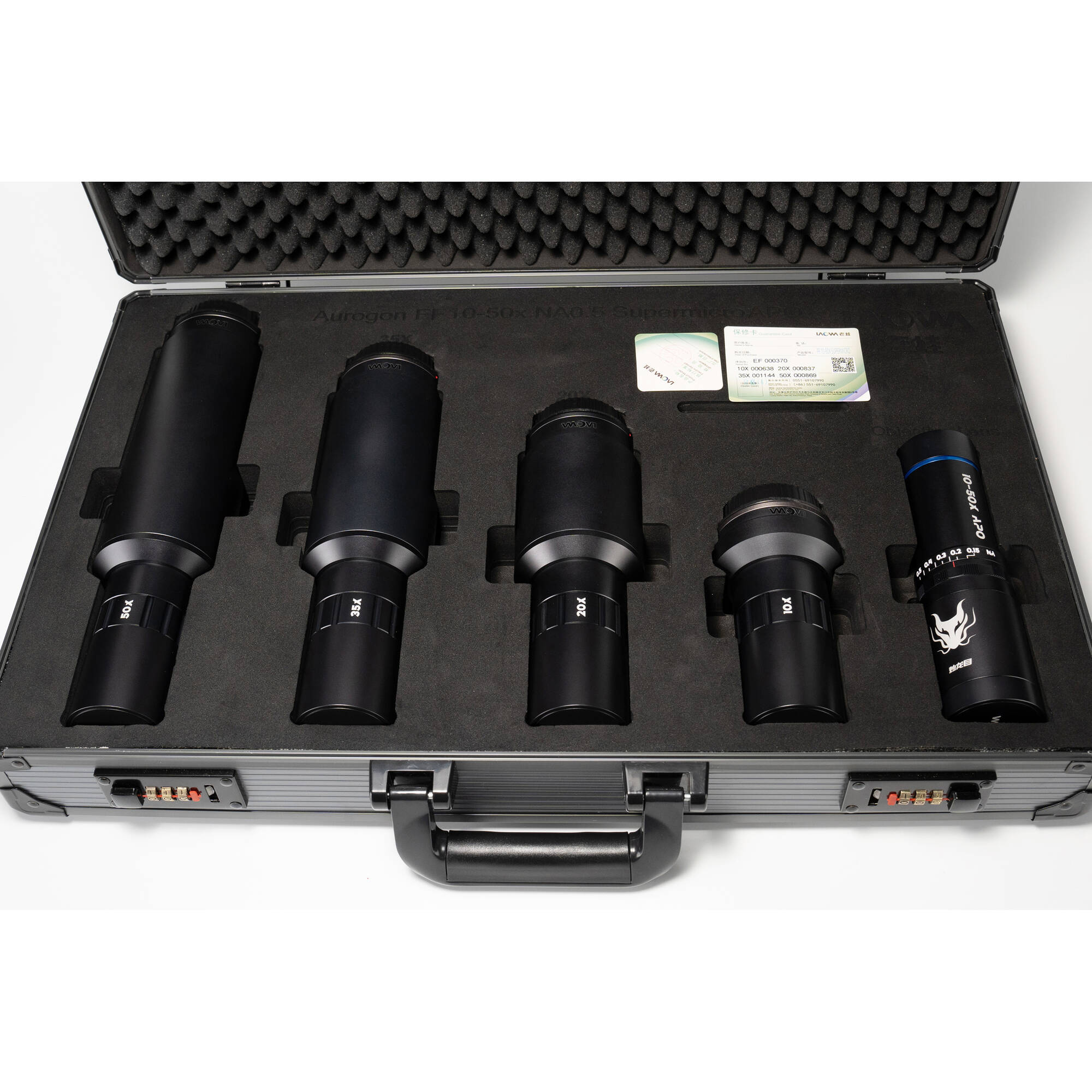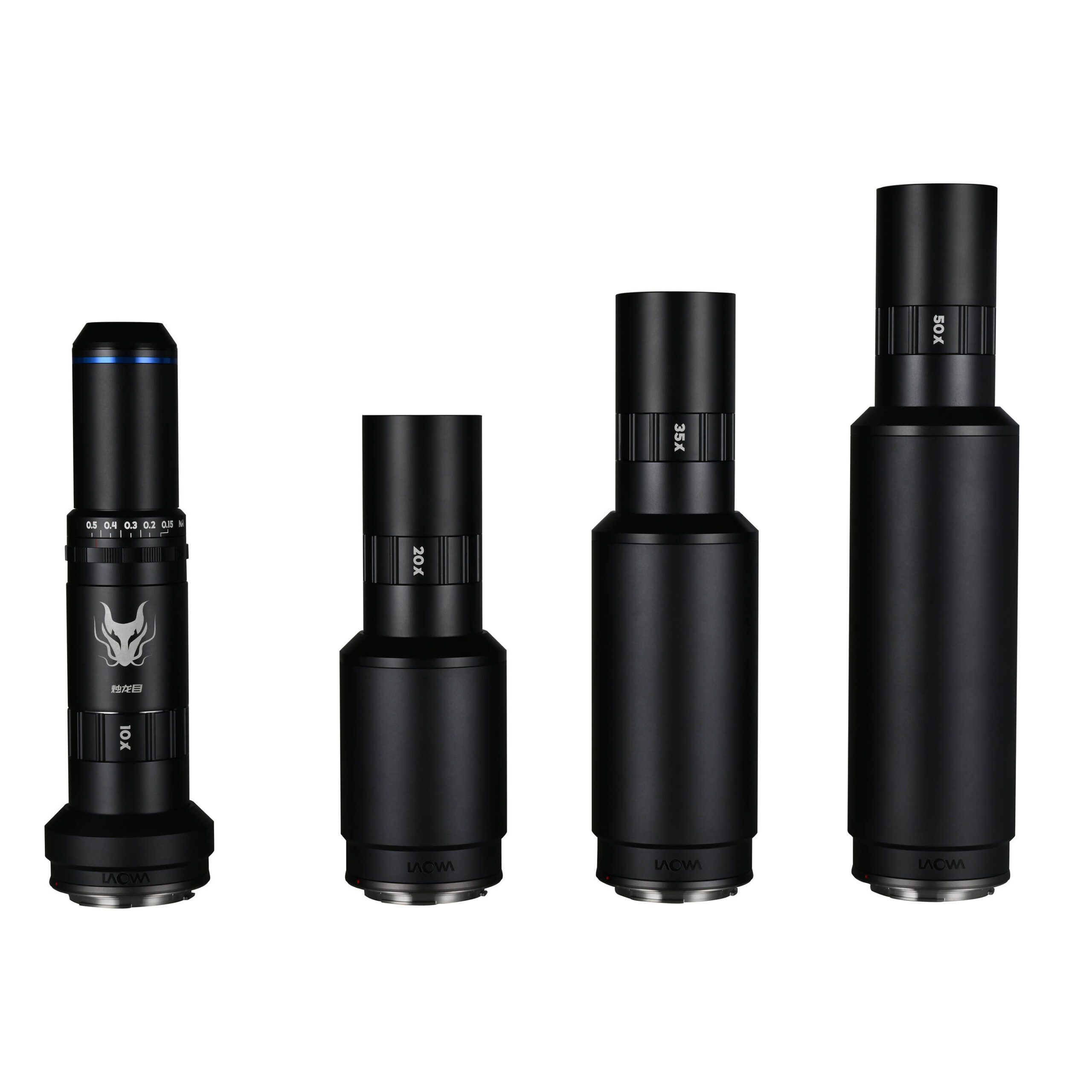 Laowa Aurogon FF 10-50X NA0.5 Supermicro APO covers full-frame sensors and can directly use on cameras. It features seamlessly interchangeable magnification tubes, offering 10X, 20X, 35X, and 50X magnification options. The adjustable numerical aperture (NA) of this microscope lens ranges from 0.5 to 0.1, the high NA providing room for exceptional brightness and minimal diffraction. The lens is designed with a fixed 20mm long working distance, ensuring both flexibility and convenience for the lighting setup. Aurogon delivers high performance with APO design and outstanding resolution. It is your ultimate companion for diving into the microscopic realm.