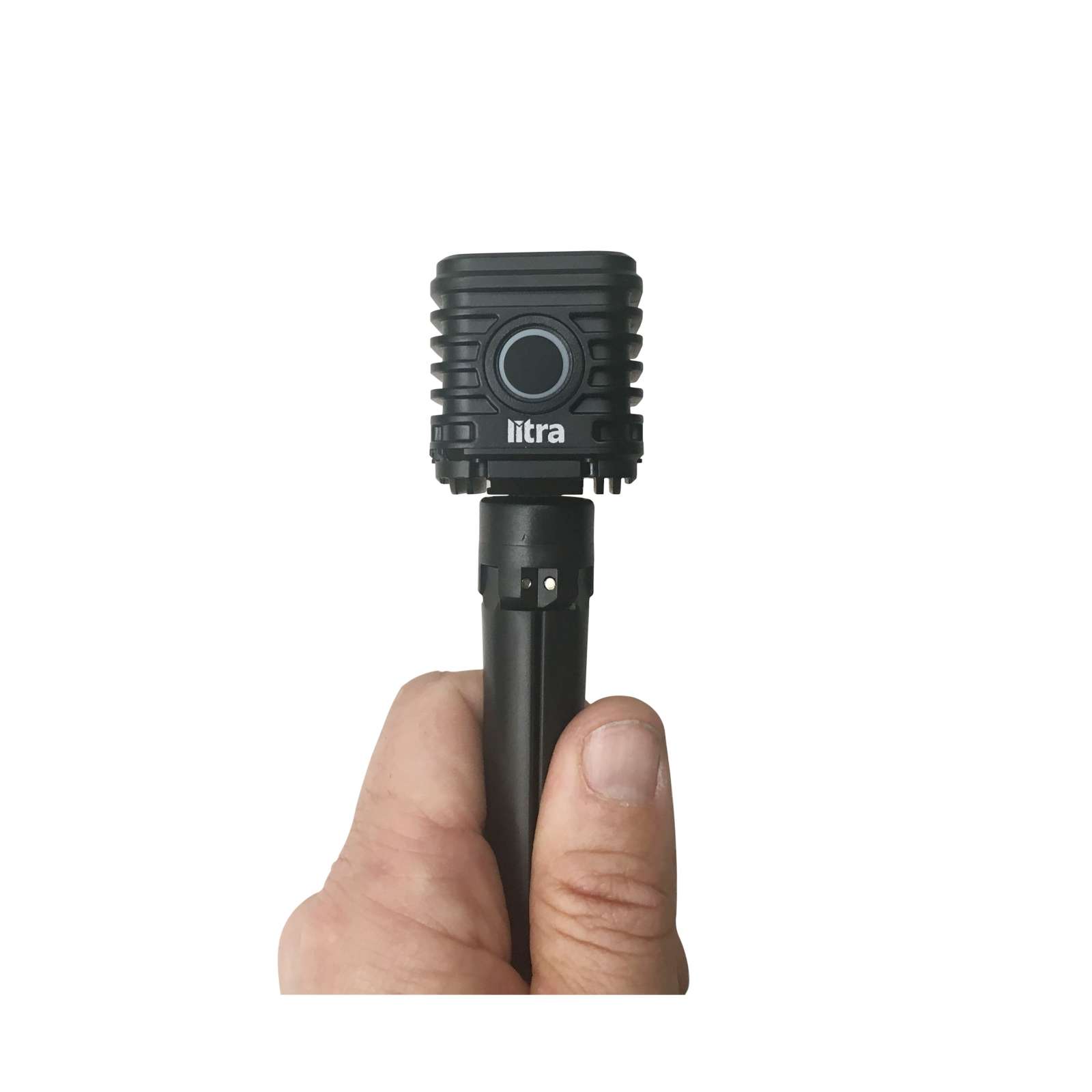 Mini τρίποδο για τη στήριξη φωτιστικών LitraTorch ή LitraPro. Σε κλειστή κατάσταση μπορεί να χρησιμοποιηθεί και ως χειρολαβή.