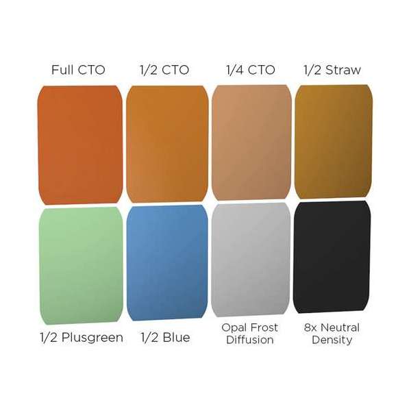 Σετ 8 φίλτρων από ανθεκτικό πολυκαρβονικό υλικό για χρήση με τα MagGel & MagSphere Modifiers. Περιλαμβάνονται τα φίλτρα 1/4 CTO, 1/2 CTO, Full CTO, 1/2 Straw (εξαιρετικό για skin tones), 1/2 Plusgreen, 1/2 Blue, 3-stop Neutral Density, Opal Frost Diffusion