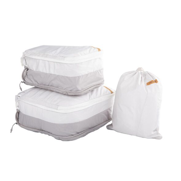 Βοηθά τους ταξιδιώτες να παραμένουν οργανωμένοι με τον σχεδιασμό διπλού διαμερίσματος για τον διαχωρισμό καθαρών και βρώμικων ρούχων. Περιλαμβάνει τρεις ελαφριές, ανθεκτικές στο τσαλάκωμα τσάντες από νάιλον: μικρή (για εσώρουχα), μεσαία (για μπλουζάκια) και μεγάλη (για μπουφάν), με τις δύο μεγαλύτερες να διαθέτουν φερμουάρ συμπίεσης για εξοικονόμηση χώρου. Ιδανικό για αποδοτικό πακετάρισμα, το σετ κρατά τα ρούχα τακτοποιημένα και εύκολα προσβάσιμα.