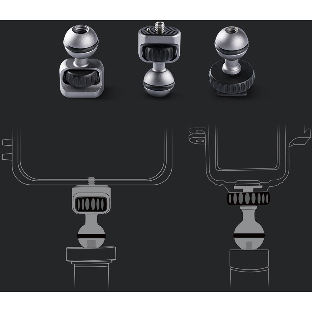 Διαθέτει mini ball κεφαλές με δυνατότητα κλίσης tilt κατά 180° και pan κατά 360°. Στην πλευρά πρόσδεσης με κάμερες διαθέτει ειδικό pin για αποφυγή περιστροφής.