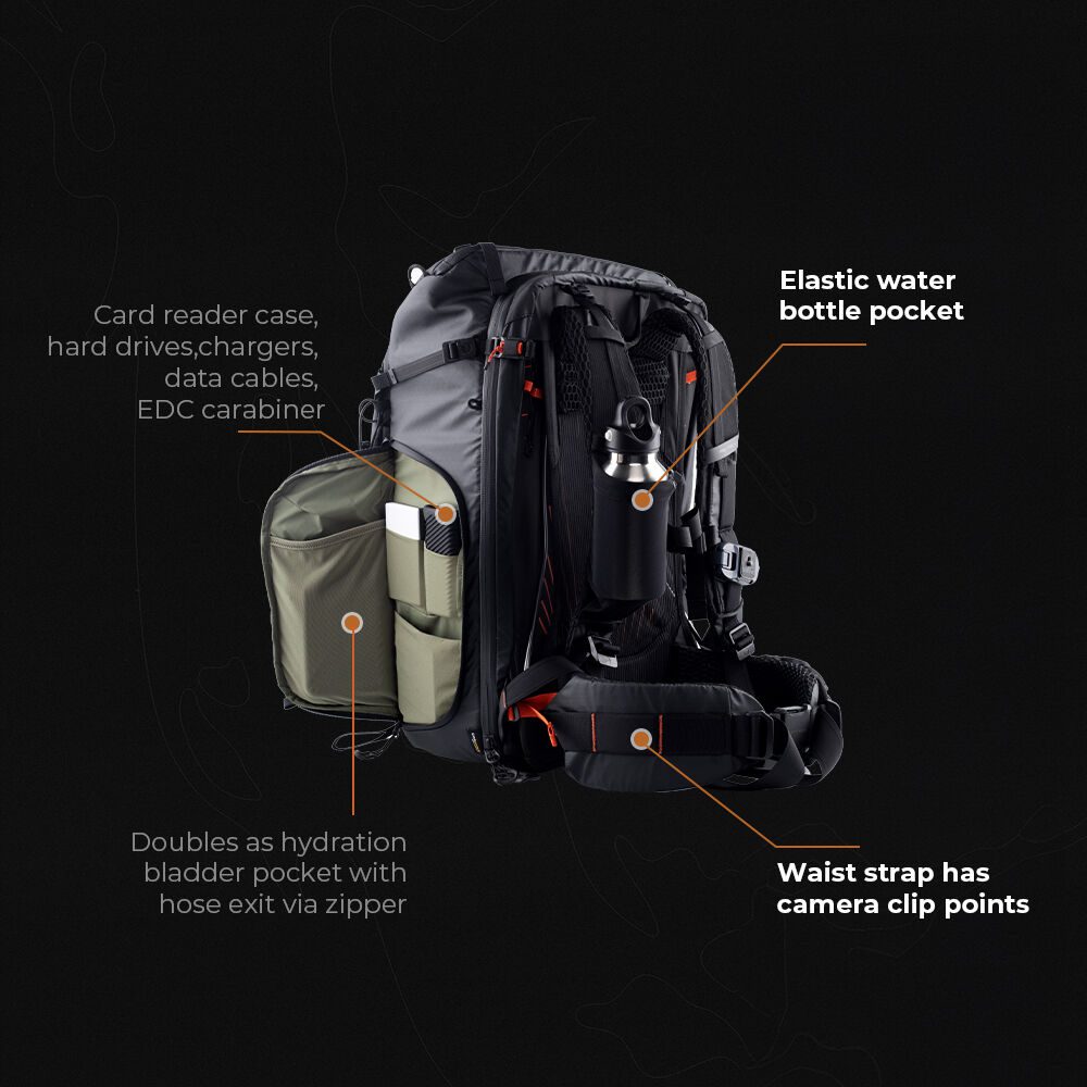 Διατίθεται σε μεγέθη 25L και 35L και διαθέτει το σύστημα AceFrame™ Harness με 3D Arch Aluminum Frame, που εξασφαλίζει ιδανική κατανομή βάρους και άνεση για πολύωρη χρήση. Παρέχει γρήγορη πρόσβαση στον εξοπλισμό μέσω πίσω ανοίγματος 180°, άνω πρόσβασης για μεγάλους φακούς και πλευρικής πρόσβασης για κάμερες. Είναι κατασκευασμένη από HyperGuard υλικό, έναν συνδυασμό CORDURA® υφάσματος και υψηλής απόδοσης PU επίστρωσης, προσφέροντας εξαιρετική αντοχή σε σχισίματα, τριβές και νερό. Διαθέτει επιπλέον χαρακτηριστικά όπως επεκτάσιμο μπροστινό διαμέρισμα, πολλαπλές τσέπες και σημεία πρόσδεσης για αξεσουάρ, ειδική θήκη για laptop/tablet, καθώς και στοιχεία ασφαλείας όπως κρυφή θήκη για AirTag και κλειδαριές φερμουάρ κατά της κλοπής. Το ρυθμιζόμενο σύστημα FreeFit Suspension επιτρέπει την προσαρμογή της εφαρμογής για επιπλέον άνεση, καθιστώντας την ιδανική επιλογή για φωτογραφικές εξορμήσεις στη φύση.