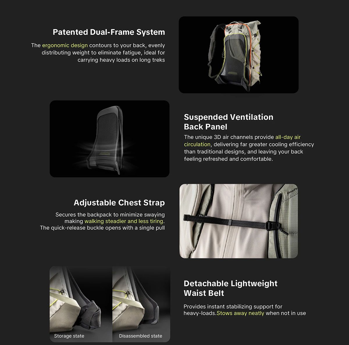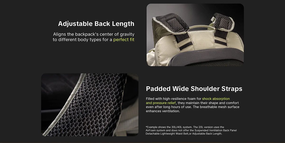 Το PGYTECH OnePro Ultralight Backpack είναι ένα ελαφρύ και εργονομικά σχεδιασμένο φωτογραφικό σακίδιο πλάτης. Το πατενταρισμένο σύστημα ανάρτησης AceFrame με διπλό πλαίσιο κατανέμει ομοιόμορφα το βάρος, μειώνοντας την κόπωση, ενώ η αεριζόμενη πλάτη, η αποσπώμενη ζώνη μέσης και οι ρυθμιζόμενοι, ενισχυμένοι ιμάντες ώμου εξασφαλίζουν άνεση σε πολύωρη χρήση.