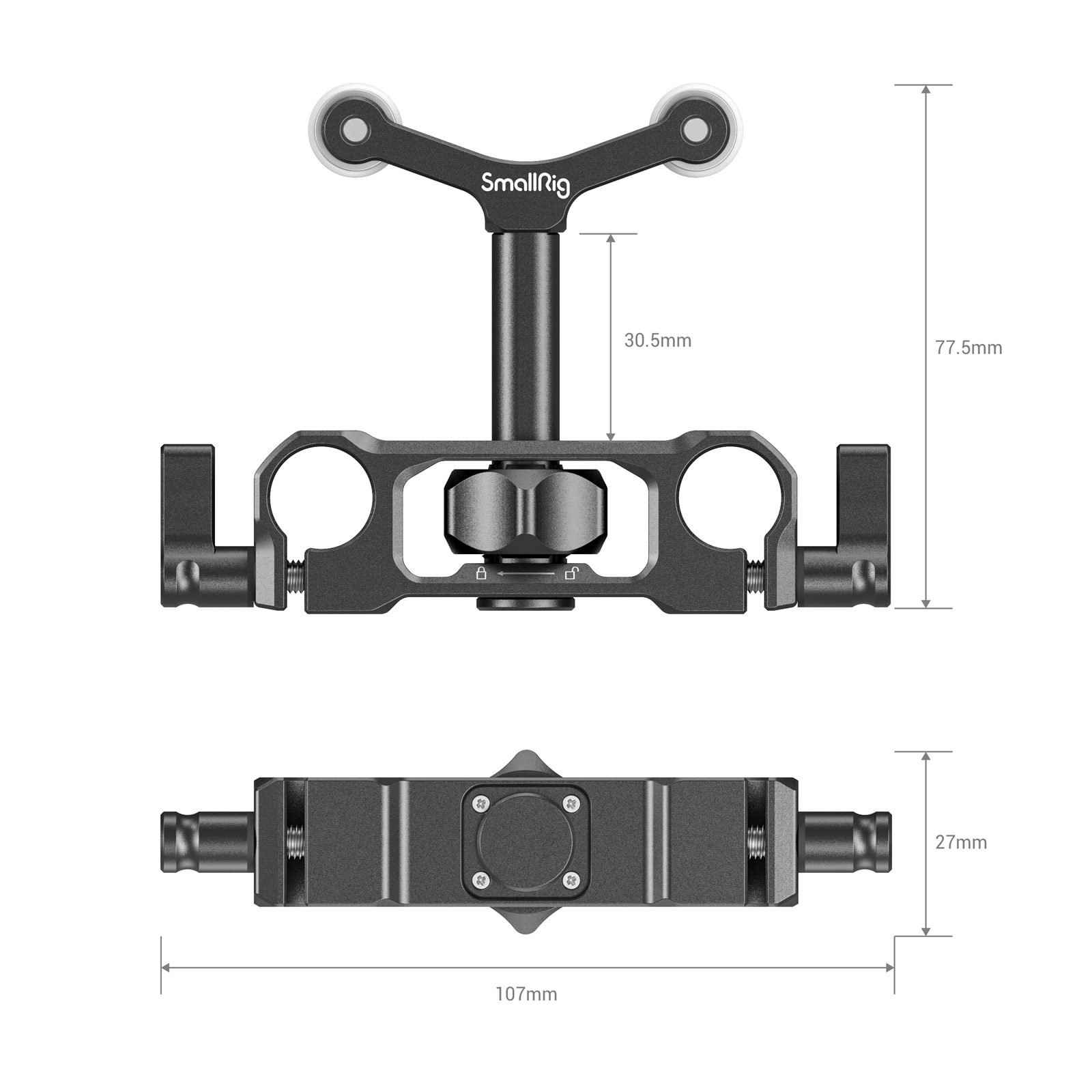 SmallRig 2727 – Universal 15mm LWS rod mount lens support