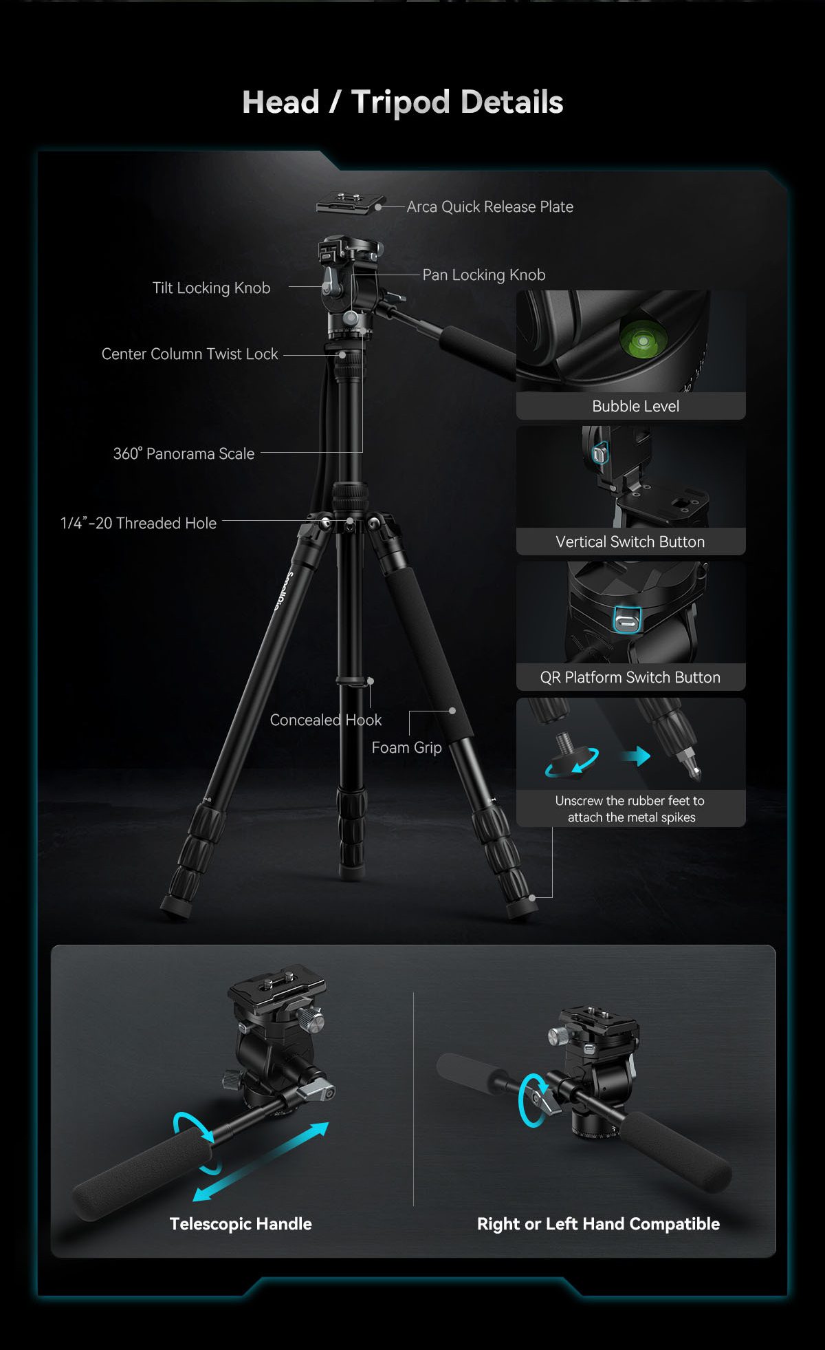 Μέγιστο φορτίο τριπόδου: 15 kg