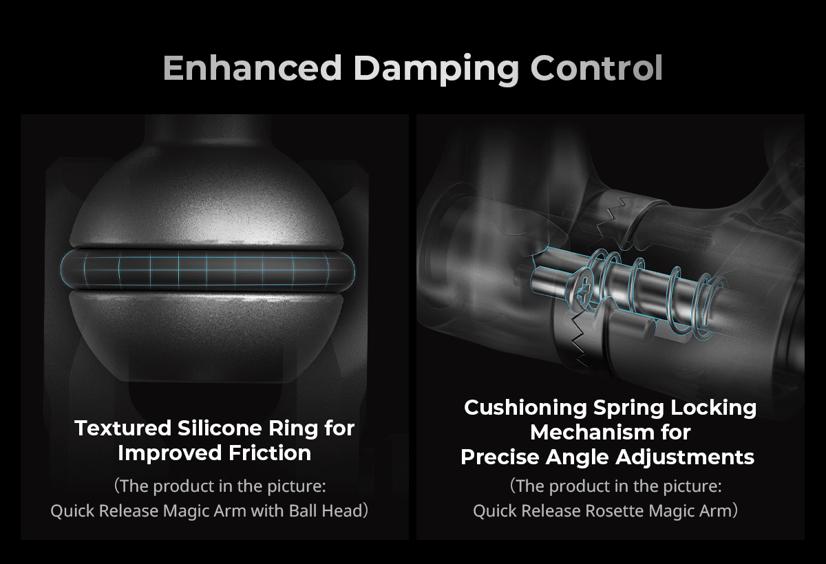 Ελαφρύ Magic Arm με σύστημα ταχείας απελευθέρωσης, κεφαλές ball ø20mm και locating pins για αποτροπή περιστροφής. Υποστηρίζει φορτίο έως 5.5kg και επιτρέπει γρήγορη, σταθερή και ευέλικτη τοποθέτηση αξεσουάρ σε επαγγελματικές διαμορφώσεις λήψης.