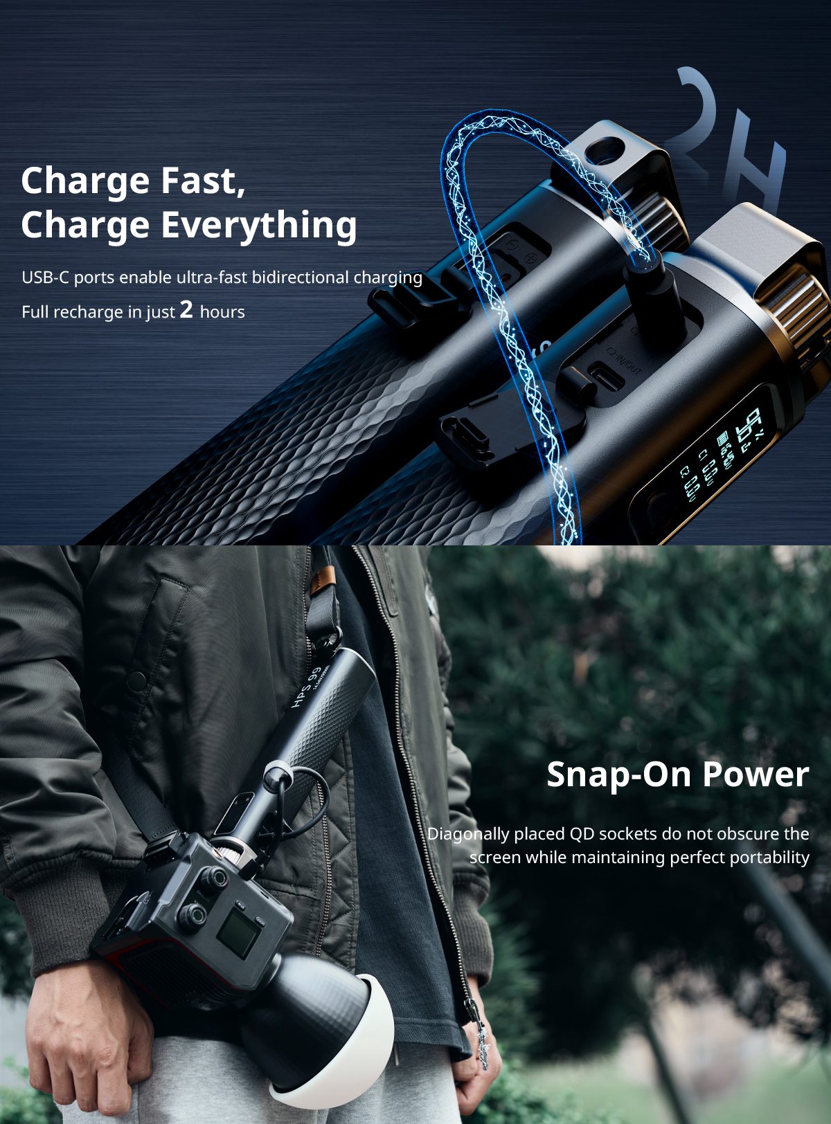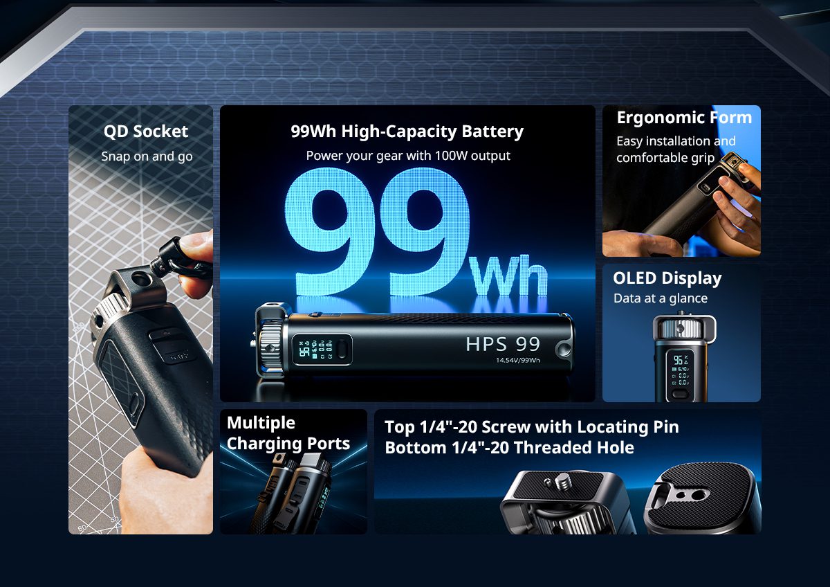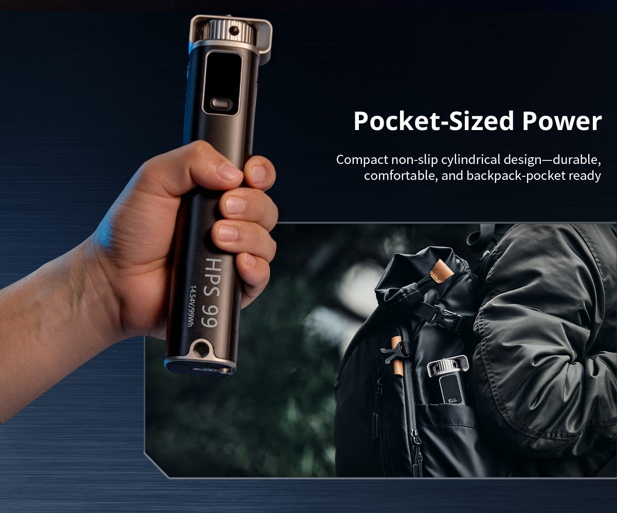 Το SmallRig HPS99 Handheld Power Stick παρέχει ταχεία φόρτιση 100W, διπλές θύρες USB-C, θύρα D-Tap και ένδειξη στάθμης ενέργειας σε ανθεκτική φορητή κατασκευή. Τοποθετείται μέσω 1/4″-20 σπειρωμάτων και υποστηρίζει κάμερες, φωτιστικά και φορητές συσκευές για αξιόπιστη τροφοδοσία και ευέλικτη χρήση κατά τη λήψη.