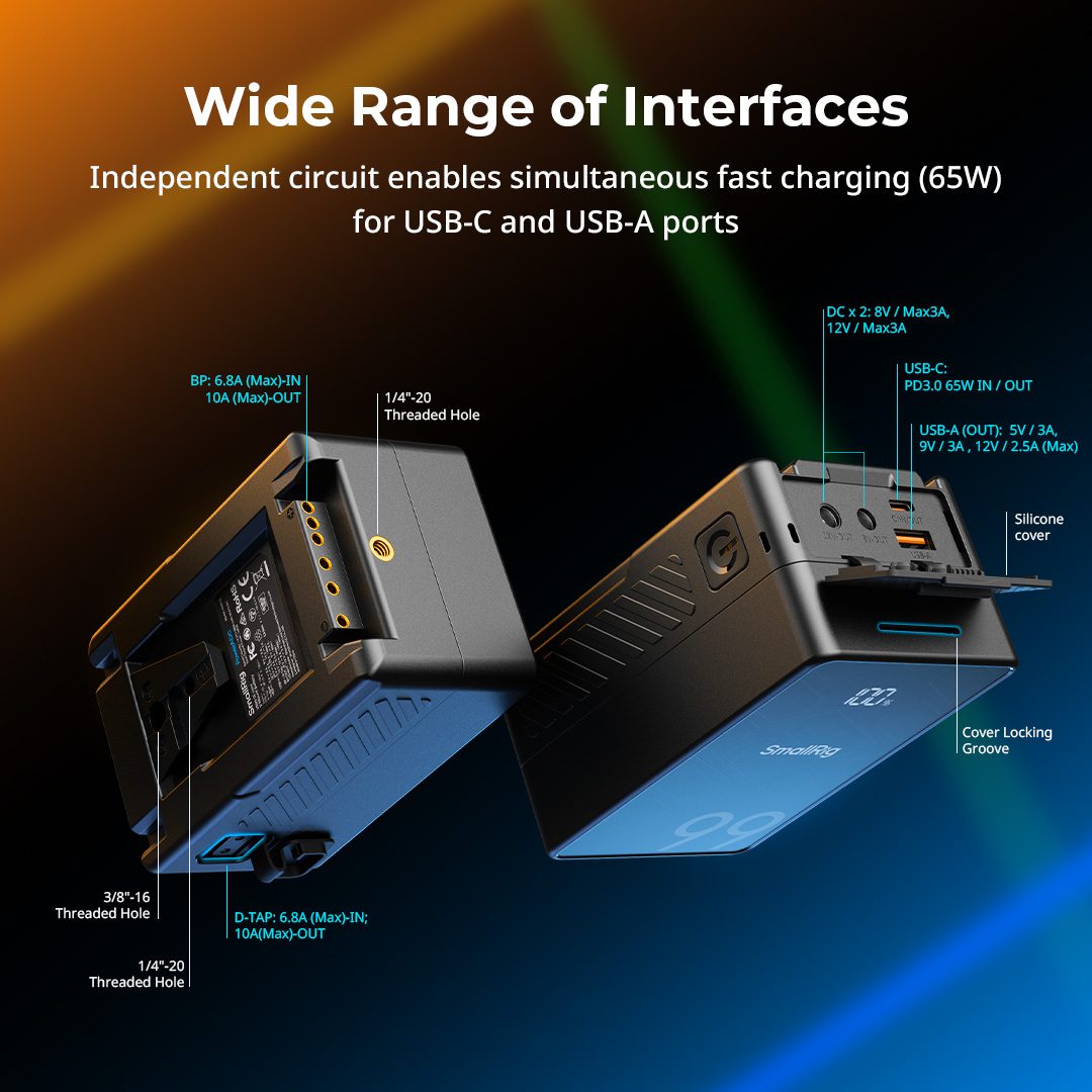 Διαθέτει κυψέλες LG A-grade, πολλαπλές θύρες τροφοδοσίας και αμφίδρομη ταχεία φόρτιση USB-C PD 65W, προσφέροντας σταθερή και αποδοτική ισχύ για κάμερες, monitors, ασύρματα συστήματα και φορητές συσκευές. Η ενσωματωμένη οθόνη OLED επιτρέπει άμεση και ακριβή παρακολούθηση της κατάστασης της μπαταρίας σε πραγματικό χρόνο.
