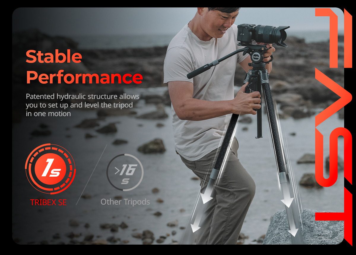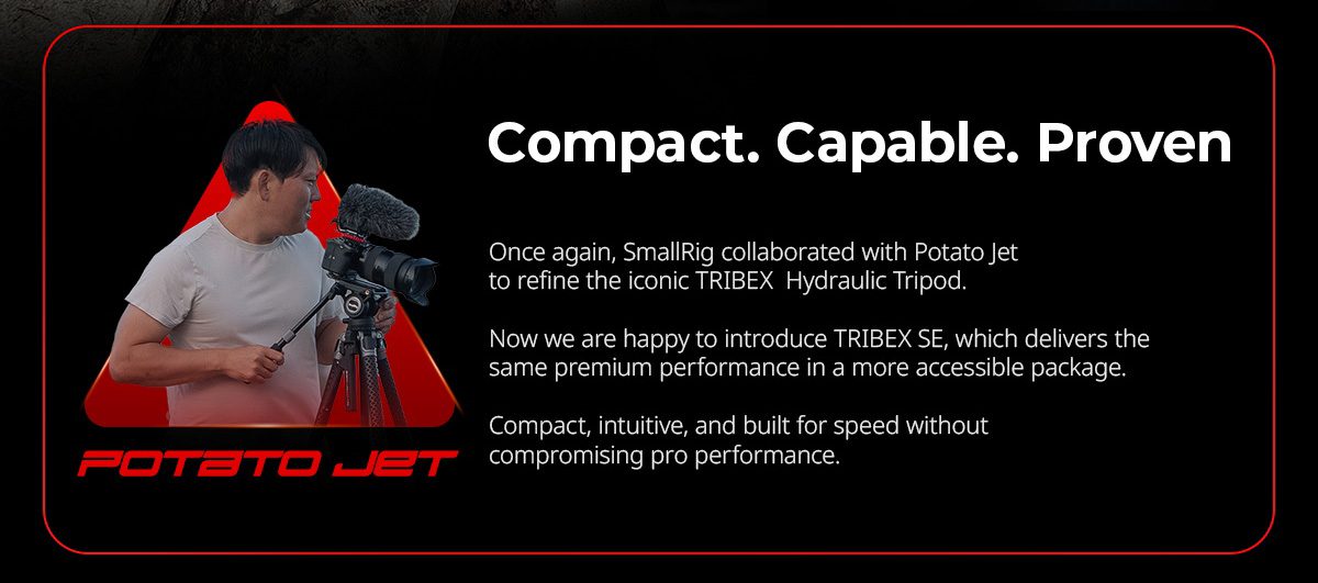 Το SmallRig x Potato Jet TRIBEX SE Hydraulic Tripod είναι ένα επαγγελματικό video τρίποδο με υδραυλικό σύστημα απελευθέρωσης X-Clutch, το οποίο επιτρέπει στα πόδια να ανοίγουν, να ρυθμίζονται και να ασφαλίζουν άμεσα με ένα μόνο πάτημα, προσφέροντας εξαιρετικά γρήγορο setup σε απαιτητικά γυρίσματα. Περιλαμβάνει συμπαγή fluid video κεφαλή για ομαλές και ελεγχόμενες κινήσεις κάμερας.