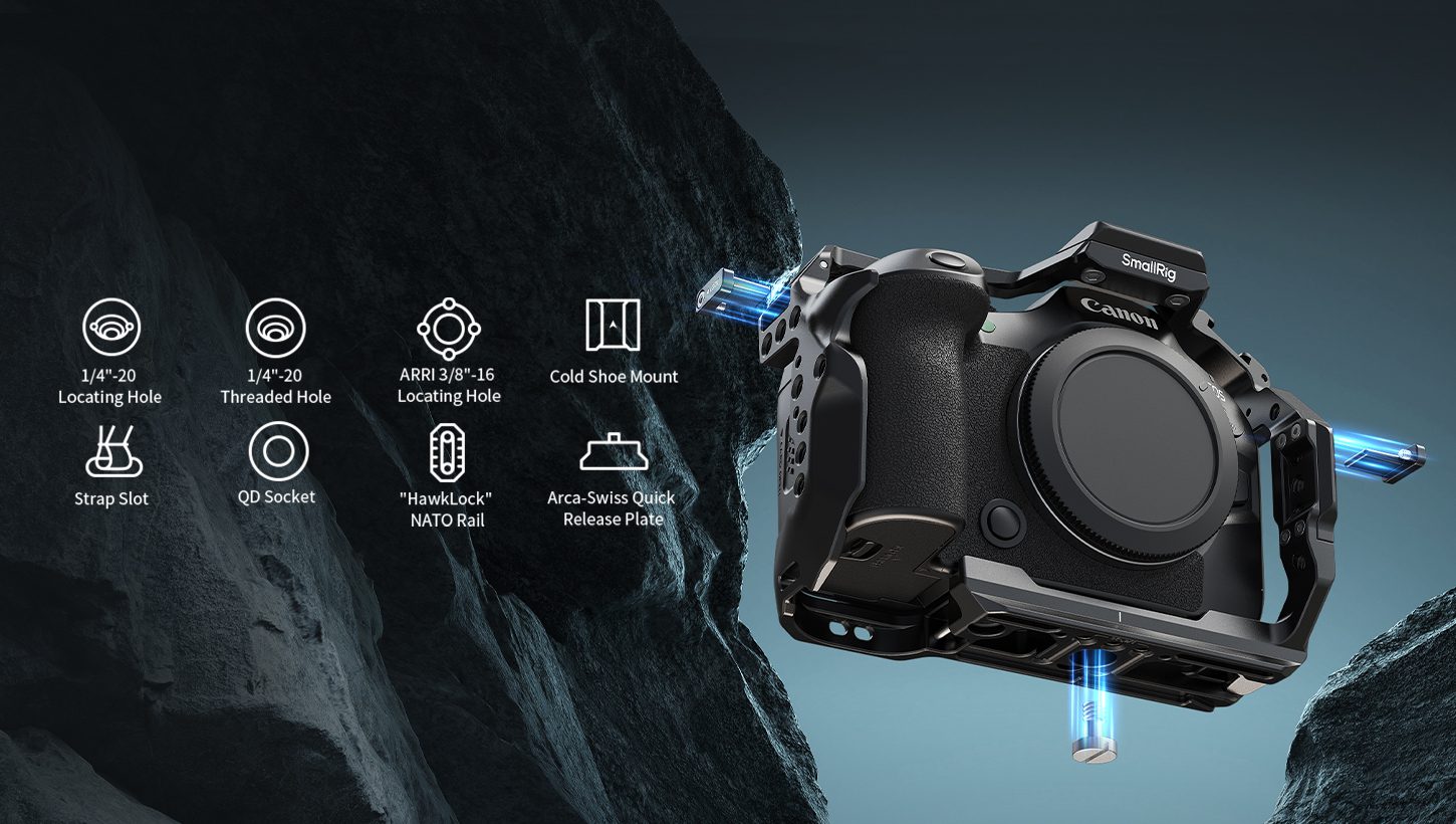 Το SmallRig “HawkLock” Quick Release Cage για Canon EOS R6 Mark III / R6 Mark II είναι cage προστασίας με σύστημα HawkLock quick release και πολλαπλά σημεία στήριξης αξεσουάρ.