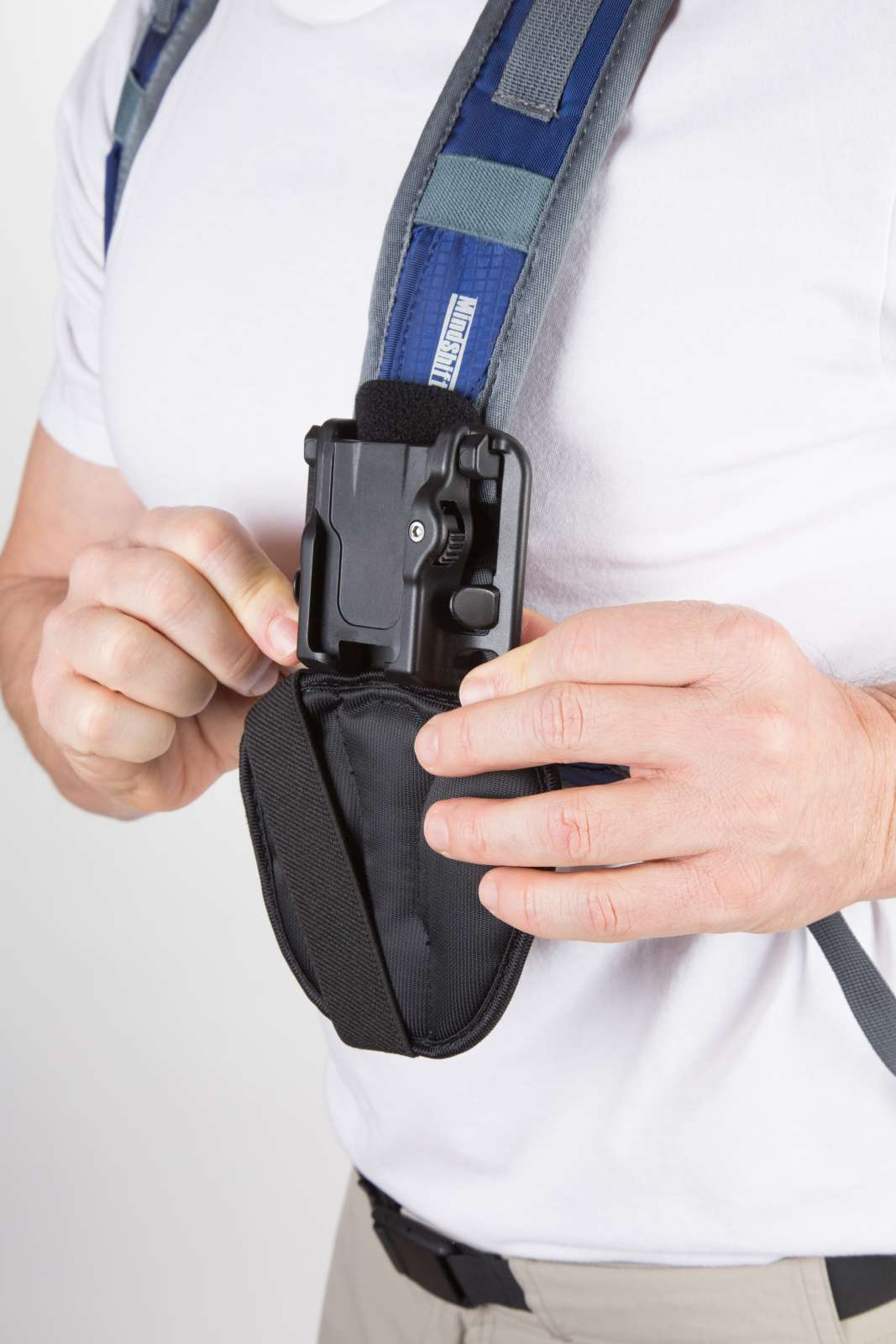 Το SpiderLight BackPacker Adapter επιτρέπει την εύκολη προσαρμογή του  SpideLight Camera Holster σας στην Backpack τσάντας σας. Με αυτό τον τρόπο μπορείτε να μεταφέρετε την Mirrorless (ή μικρή DSLR) μηχανή σας, φωτογραφικά αξεσουάρ ή κάμερες και αξεσουάρ GoPro στους ιμάντες της Backpack τσάντας τους.