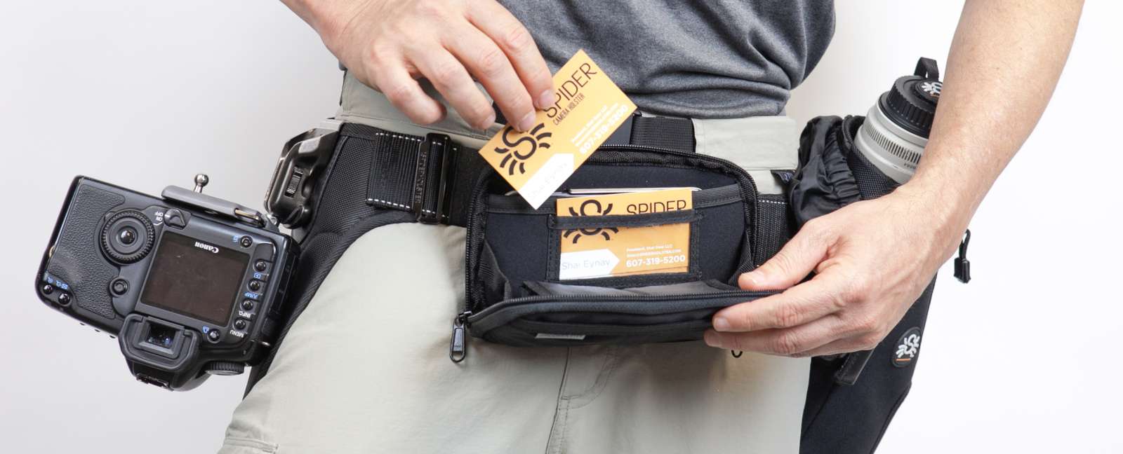 Το SpiderPro Memory Card Organizer V2 δένει με ασφάλεια σε οποιαδήποτε ζώνη (τόσο ζώνη Spider Holster όσο και κοινή συμβατική ζώνη) και επιτρέπει την ασφαλή αποθήκευση των καρτών μνήμης και του κινητού σας τηλεφώνου. Αποθηκεύει ταυτόχρονα μέχρι 6 CF και 3 SD κάρτες μνήμης.