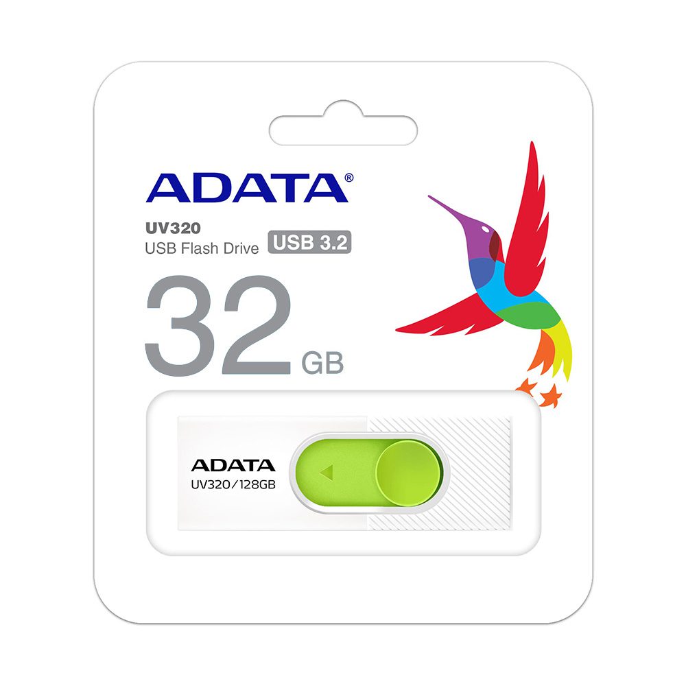 Το UV320 διαθέτει μια ολισθαίνουσα υποδοχή USB, η οποία εκτείνεται ομαλά από τη μονάδα με το πάτημα του αντίχειρα. Ο σχεδιασμός χωρίς καπάκι εξαλείφει την ταλαιπωρία των χαμένων καπακιών. Έρχεται με υψηλής ταχύτητας διεπαφή USB 3.2 Gen 1 και παρέχει ποικίλες χωρητικότητες από 32GB έως 128GB, επιτρέποντάς σας να μοιράζεστε ταχύτερα και να αποθηκεύετε περισσότερα. Διατίθεται λευκό / πράσινο.