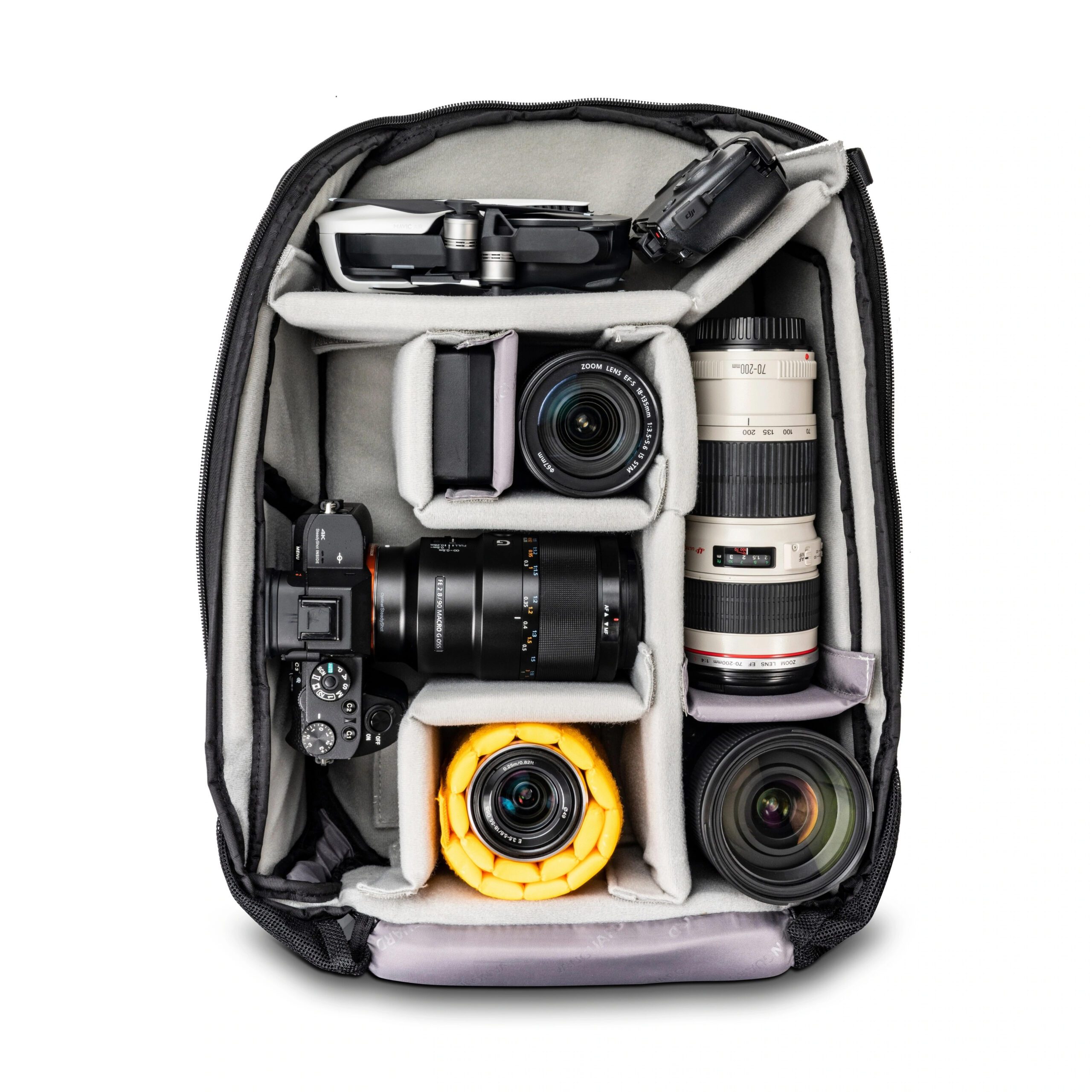 Η VEO SELECT 45BFM είναι μία ευέλικτη τσάντα πλάτης με executive design και σχεδιασμό εμπρόσθιας φόρτωσης που μπορεί να χωρέσει 1 DSLR με προσαρτημένο φακό, 5-6 επιπλέον φακούς (έως 70-200mm f / 2.8), ένα φλας και αξεσουάρ. Εναλλακτικά, θα μπορούσε να φιλοξενήσει μία μηχανή CSC/DSLR, gimbal, φωτιστικό LED, συσκευή εγγραφής ήχου ή ένα μικρό drone. Διαθέτει ειδική θέση για tablet/laptop 10,5” και ιμάντα για να μεταφέρετε ένα τρίποδο.