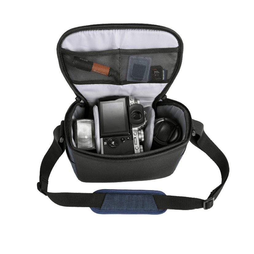 Η VESTA ASPIRE 21 είναι μια συμπαγής, ελαφριά και κομψή φωτογραφική τσάντα ώμου που μπορεί να χωρέσει 1 επαγγελματική DSLR μηχανή με προσαρτημένο φακό, 1-2 επιπλέον φακούς, φλας και απαραίτητα αξεσουάρ. Μπορεί επίσης να μεταφέρει ένα επιτραπέζιο τρίποδο στην πλαϊνή τσέπη.