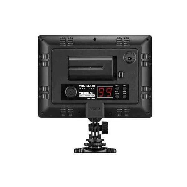 Το YN300 AIR είναι ένα πολυ λεπτό και ελαφρύ επαγγελματικό φορητό φωτιστικό τεχνολογίας LED. Αποτελείται από 48 Leds θερμοκρασίας 3200Κ και 48 Leds θερμοκρασίας 5500Κ που διαθέτουν κορυφαίες βαθμολογίες CRI 95+ εξασφαλίζοντάς σας κορυφαία χρωματική πιστότητα. Αυξομειώνοντας την ένταση των θερμών και ψυχρών LED μπορείτε να πετύχετε ενδιάμεσες θερμοκρασίες φωτός. Το YN300 AIR διαθέτει ψηφιακή οθόνη για να έχετε έλεχγο της ισχύος φωτισμού. Μπορεί να λειτουργήσει με ρεύμα (το τροφοδοτικό δεν παρέχεται στη συσκευασία) ή με μπαταρίες σειράς Sony L (δεν περιλαμβάνονται).