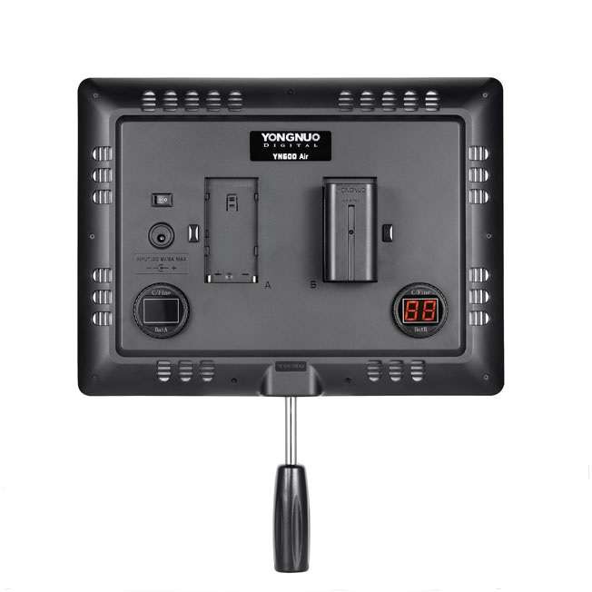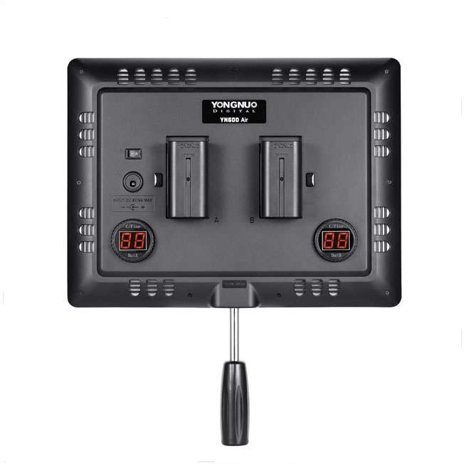 Το YN600 AIR είναι ένα πολυ λεπτό και ελαφρύ επαγγελματικό φορητό φωτιστικό τεχνολογίας LED. Αποτελείται από 192 SMD LEDs που διαθέτουν κορυφαίες βαθμολογίες CRI 95+ εξασφαλίζοντάς σας κορυφαία χρωματική πιστότητα. Αυξομειώνοντας την ένταση των θερμών και ψυχρών LED μπορείτε να πετύχετε ενδιάμεσες θερμοκρασίες φωτός. Το YN600 AIR διαθέτει 2 ψηφιακές οθόνες για να έχετε έλεχγο της ισχύος φωτισμού. Μπορεί να λειτουργήσει με ρεύμα (το τροφοδοτικό δεν παρέχεται στη συσκευασία) ή με μπαταρίες σειράς Sony L (δεν περιλαμβάνονται).
